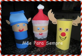 Para começar irei mostrar minha reciclagem para esse Natal, estou com ideias, mas ainda vou coloca-las em prática. Material usado: 3 rolinhos de papel higiênico, eva coloridos, cola quente e canetinha preta. E o que era lixo vira decoração para árvore de Natal.