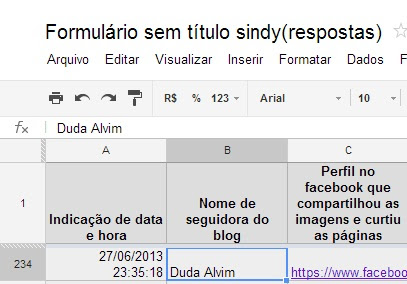 Vamos ver se a Duda cumpriu todas as regras descritas na postagem do sorteio.